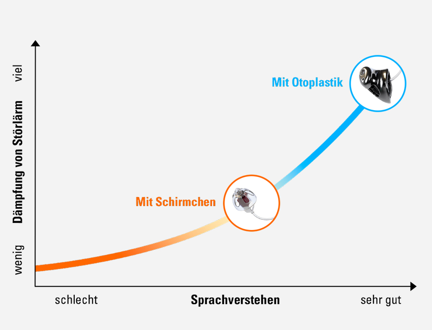 Die Otoplastik dämmt eingehenden Störlärm. Das Hörsystem kann Sprache und Nutzinformation optimal weiterleiten. So holen Sie das Beste aus Ihrem Hörsystem!